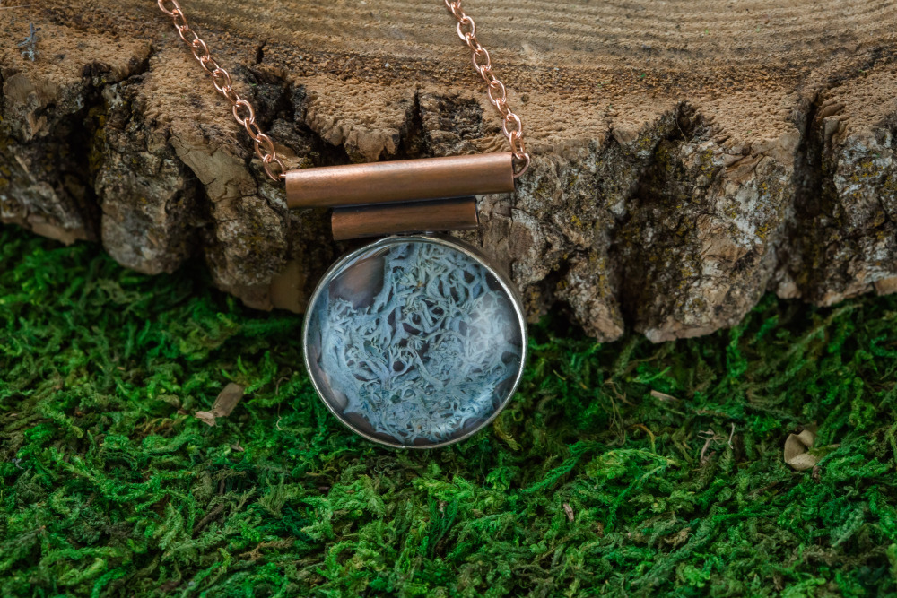 A Blue Mossy Realm Necklace is a unique way to wear nature’s beauty.